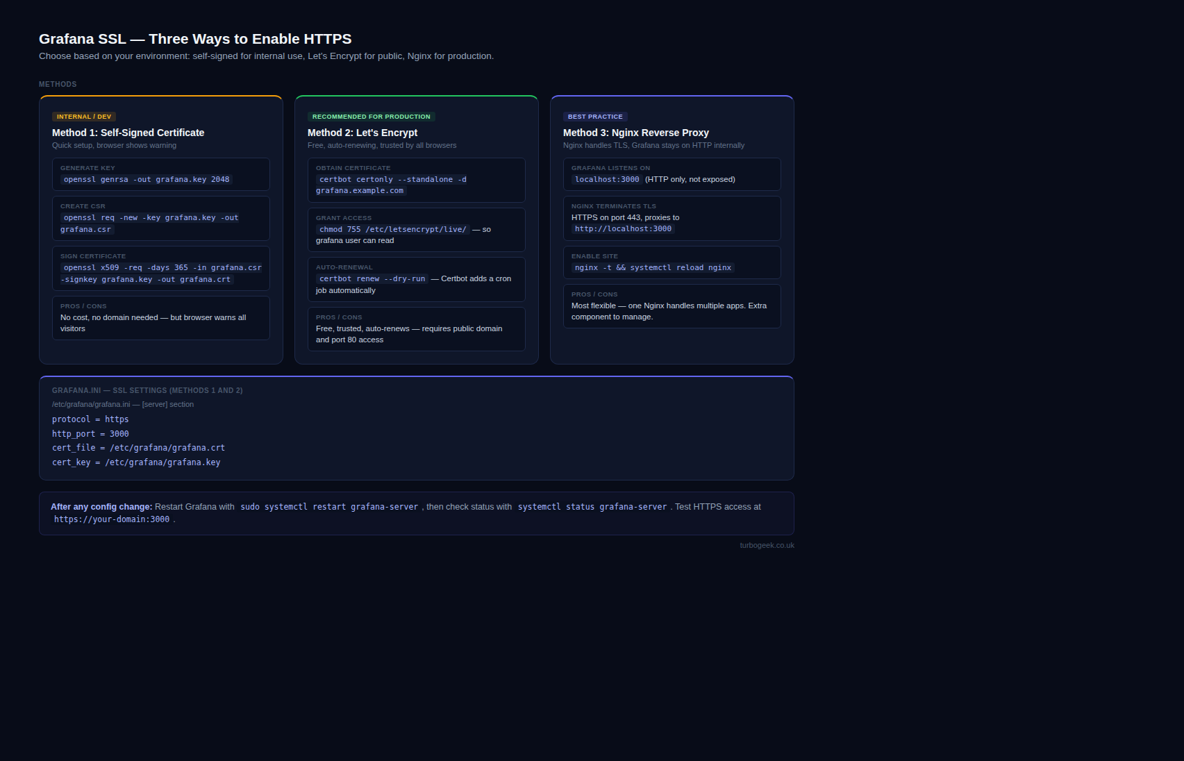 New to SSL on Grafana? Start with Method 1 below — it covers the fundamentals and takes about five minutes.